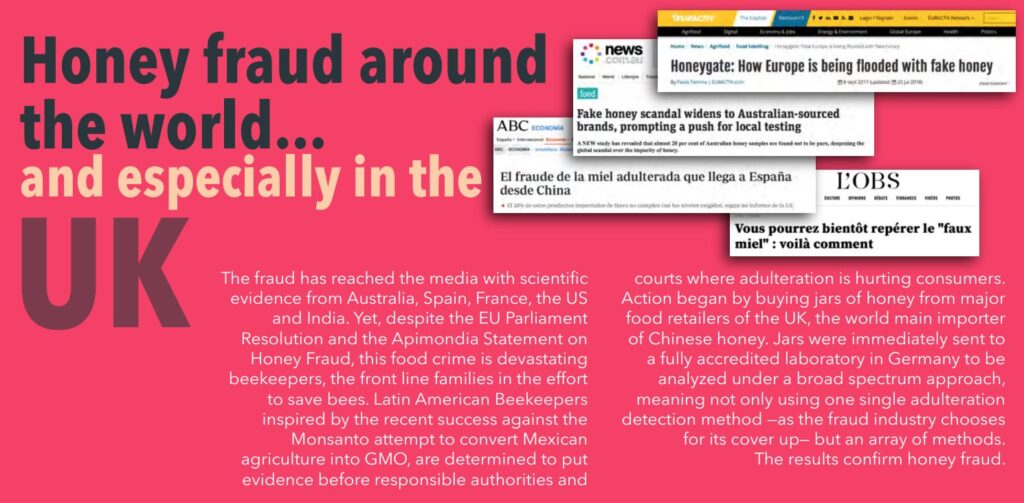 • Mislabelled origins – honey imported from other countries may be relabelled as “local” or “UK honey”.